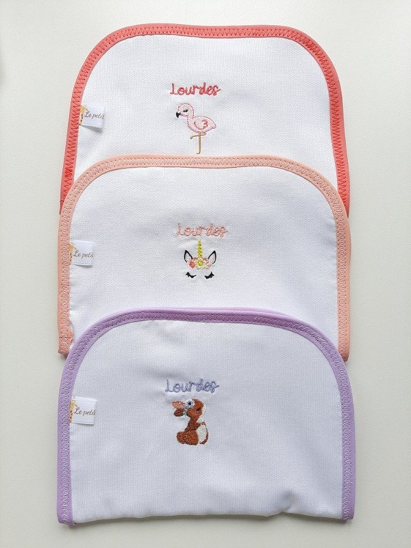 Pueden ser estampados o bordados con algún animalito, en ambos casos se puede personalizar con el nombre del bebé!!